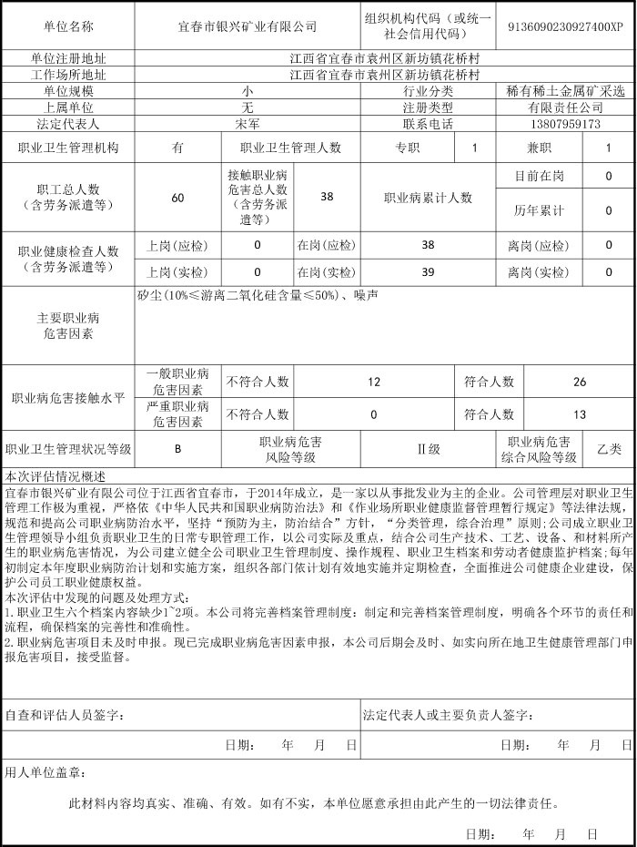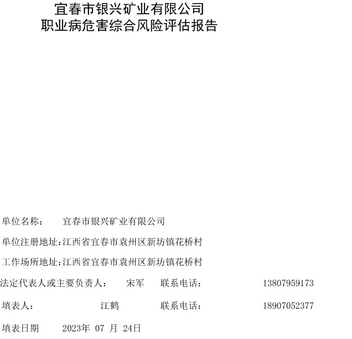 宜春市銀興礦業(yè)有限公司風(fēng)險(xiǎn)評(píng)估